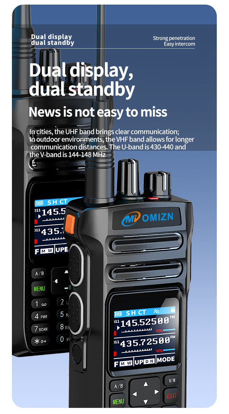 - All-Environment Communication: Dual-band technology adapts to urban and open terrains with 15-mile range. Detachable antenna enhances signal flexibility for diverse scenarios. Military-grade construction withstands drops, dust, and water (-20°C to +50°C).